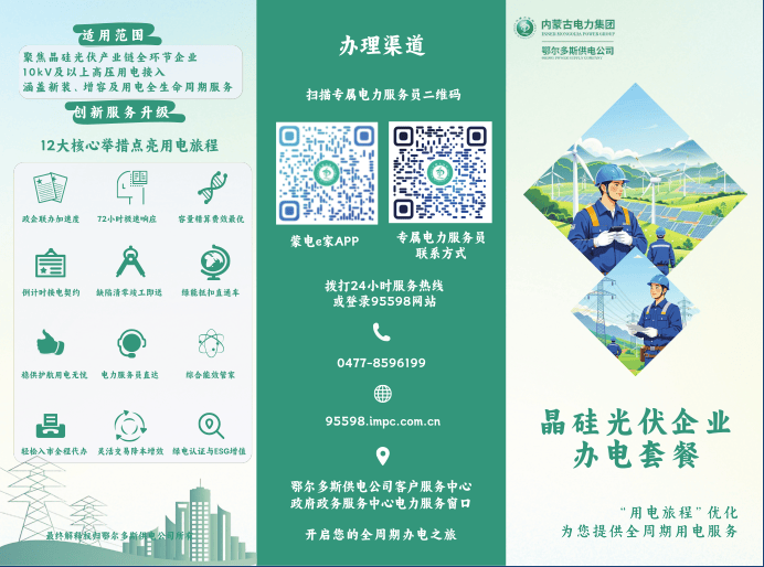 供电服务关系千行百业,连着千家万户。一直以来,鄂尔多斯供电公司坚持以人民为中心的发展思想,践行人民电业为人民的企业宗旨,本次最新推出的“电靓暖城 小微企业办电套餐”与“晶硅光伏企业办电套餐”便是该公司始终以客户需求为导向,不断创新工作机制,优化电力营商环境、提升供电服务品质的重要举措。